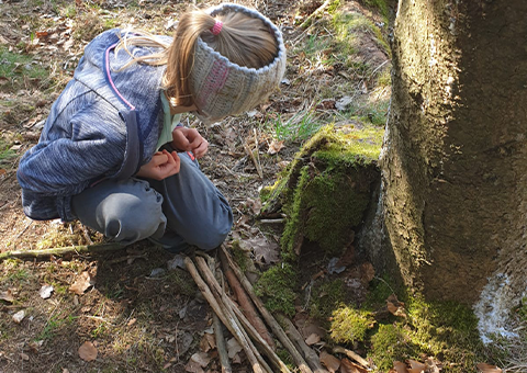 Ganz im Hier und Jetzt, in Achtsamkeit und Stille. Das Vogelgezwitscher, das Rausches des nahen Baches und den Wind in den Baumkronen nehmen sie mit allen Sinnen wahr. Langsam wird der Atem ruhiger und alle genießen die frische duftende Waldluft. Nachdem der letzte Klang verstummt ist, öffnen die Kinder und die „Waldfrau“ Sonja ihre Augen wieder und siehe da, ein Großteil der Hektik ist verschwunden.
